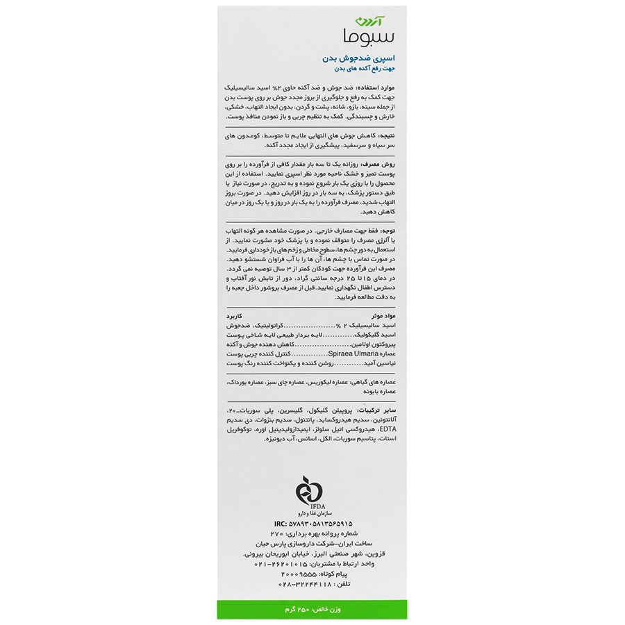 اسپری ضد جوش بدن سالیسیل آردن سبوما