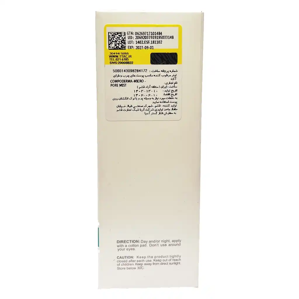 تنظیم چربی پوست: تونر کامپودرما با فرمولاسیون خاص خود به تعادل چربی پوست کمک کرده و از تولید چربی اضافی جلوگیری میکند. این ویژگی باعث میشود پوست شما مات و شاداب باقی بماند و از بروز جوش و آکنه جلوگیری کند.
