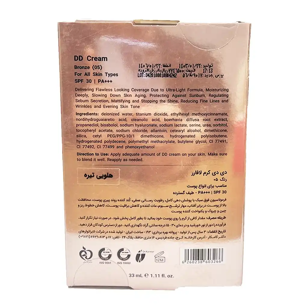 پوششدهی طبیعی و یکنواخت: دی دی کرم لافارر با فرمولاسیون خاص خود پوششی طبیعی و یکدست بر روی پوست ایجاد کرده و imperfections (نقصهای پوست) مانند لکها، تیرگیها و جوشها را پوشش میدهد.