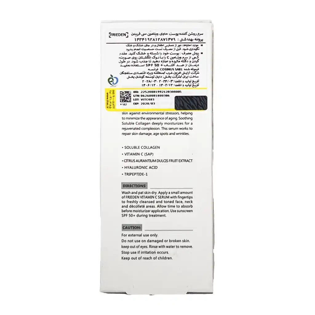 سرم روشنکننده پوست حاوی ویتامین C فریدن | درخشانکننده و ضد لک قویپوستی شفاف، یکدست و درخشان با ویتامین C!