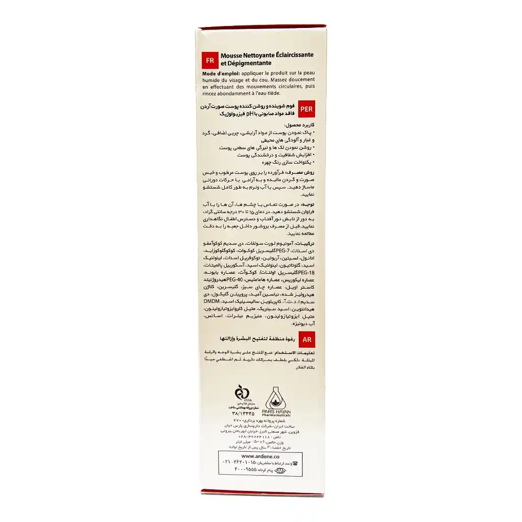 فوم شوینده و روشنکننده پوست صورت آردن | پاکسازی ملایم همراه با روشنکنندگی و شادابی پوستفوم شوینده و روشنکننده پوست صورت آردن، یک پاککننده ملایم با خاصیت روشنکنندگی است که بهطور ویژه برای پاکسازی عمیق منافذ پوست بدون ایجاد خشکی یا تحریک طراحی شده است. این محصول با ترکیبی از عوامل ضدلک و روشنکننده، به یکنواختسازی رنگ پوست کمک کرده و شادابی و درخشندگی طبیعی آن را بازمیگرداند.