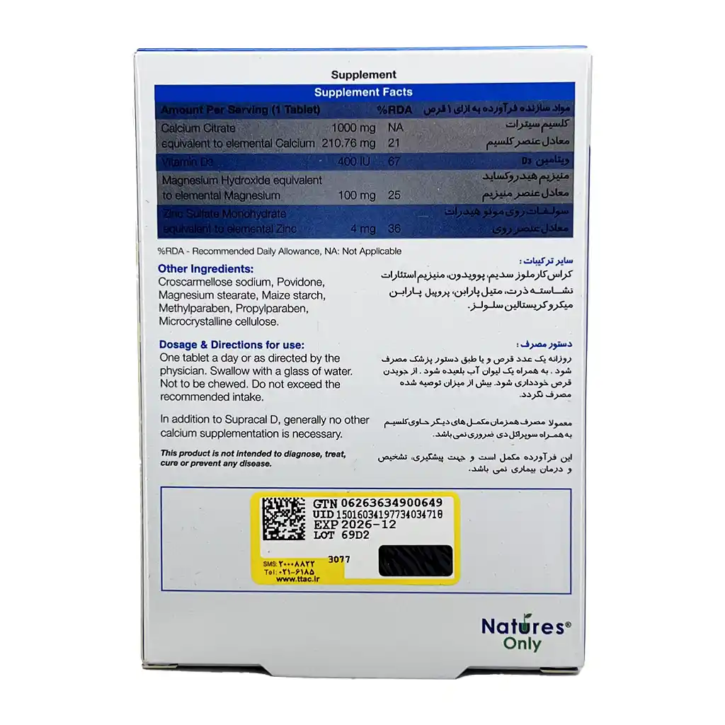 • نام محصول: قرص سوپراکل Supracal نیچرز اونلی