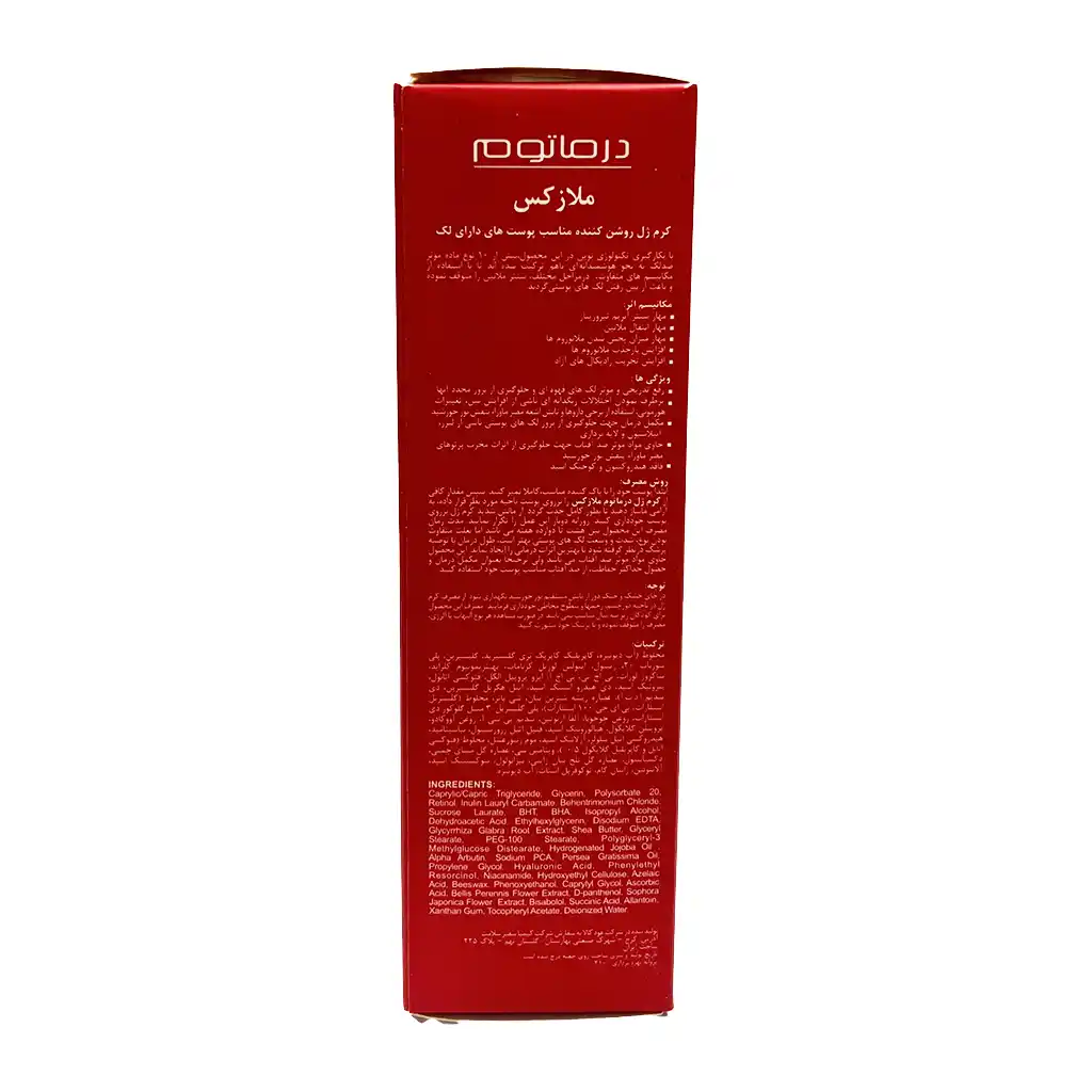 کرم ژل روشن کننده ملازکس درماتوم مناسب پوستهای دارای لک | کاهش لک، یکنواختسازی رنگ پوست و روشنکنندگی تدریجیکرم ژل روشن کننده ملازکس درماتوم، محصولی تخصصی برای کاهش لکهای تیره، یکنواخت کردن رنگ پوست و افزایش شفافیت و درخشندگی طبیعی آن است. این فرمولاسیون ملایم بافتی سبک و غیرچرب دارد که به سرعت جذب پوست شده و بدون ایجاد حساسیت، به کاهش تدریجی رنگدانههای پوستی کمک میکند. مناسب برای انواع پوست، بهویژه پوستهایی که دچار لکهای ناشی از آفتاب، جای جوش یا تغییرات هورمونی هستند.